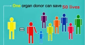 Organ donation means taking the healthy organs from one person for transplantation into another. This happens after someone is declared brain dead, and has previously given permission for donating their organs. There are many kinds of organ donations including the heart, lung, liver, kidney, pancreas, and intestine donation. Experts say that the organs from one donor can save as many as 50 people. Organ and tissue donation is more important than many of us realize, for both society and the individuals it directly affects. Every 10 minutes another name is added to the national organ transplant waiting list. As I mentioned before, currently there are 123,000 men, women, and children need lifesaving organ transplants.